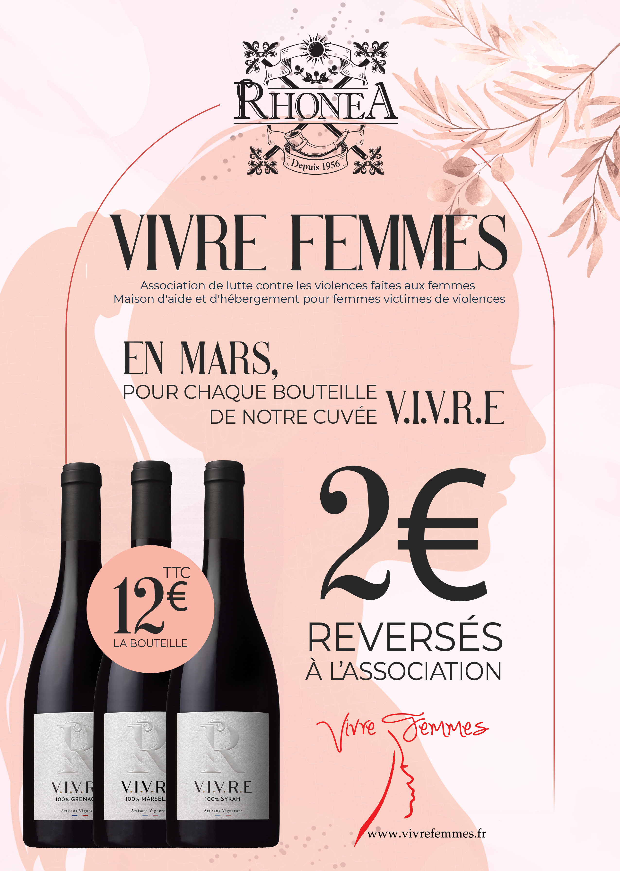 Pendant tout le mois de mars, 2 € seront reversés à Vivre Femmes pour chaque bouteille de la gamme V.I.V.R.E achetée.